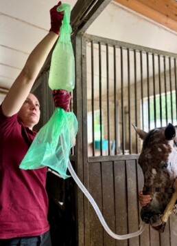 Für den Fall der Fälle empfehle ich Ihnen eine Liste mit den Telefonnummern von Pferdepraktikern und Kliniken in der Umgebung des Stalles ans schwarze Brett zu hängen. Zusätzlich hilft es die Adresse des Stalls für das Navigationsgerät des Tierarztes mit auf den Zettel zu schreiben, um auch diese notfalls durchgeben zu können. Es sollte zu jeder Zeit eine Transportmöglichkeit vorhanden sein, um das betroffene Pferd schnellstmöglich in eine Klinik transportieren zu können. Um dem Patienten und allen beteiligten Menschen im Notfall nicht noch mehr Stress zu bereiten, sollten Sie auch mit Nicht-Turnierpferden in regelmäßigen Abständen das Verladen üben. Sollte jetzt eine Klinikeinweisung notwendig sein, beachten Sie bitte, dass nur transportfähige Pferde transportiert werden dürfen. So sollte z.B. gerade bei Kolikern vorher eine Nasenschlundsonde geschoben werden und ein Schmerzmittel verabreicht werden, damit ihr Pferd den Transport auch gut überstehen kann.